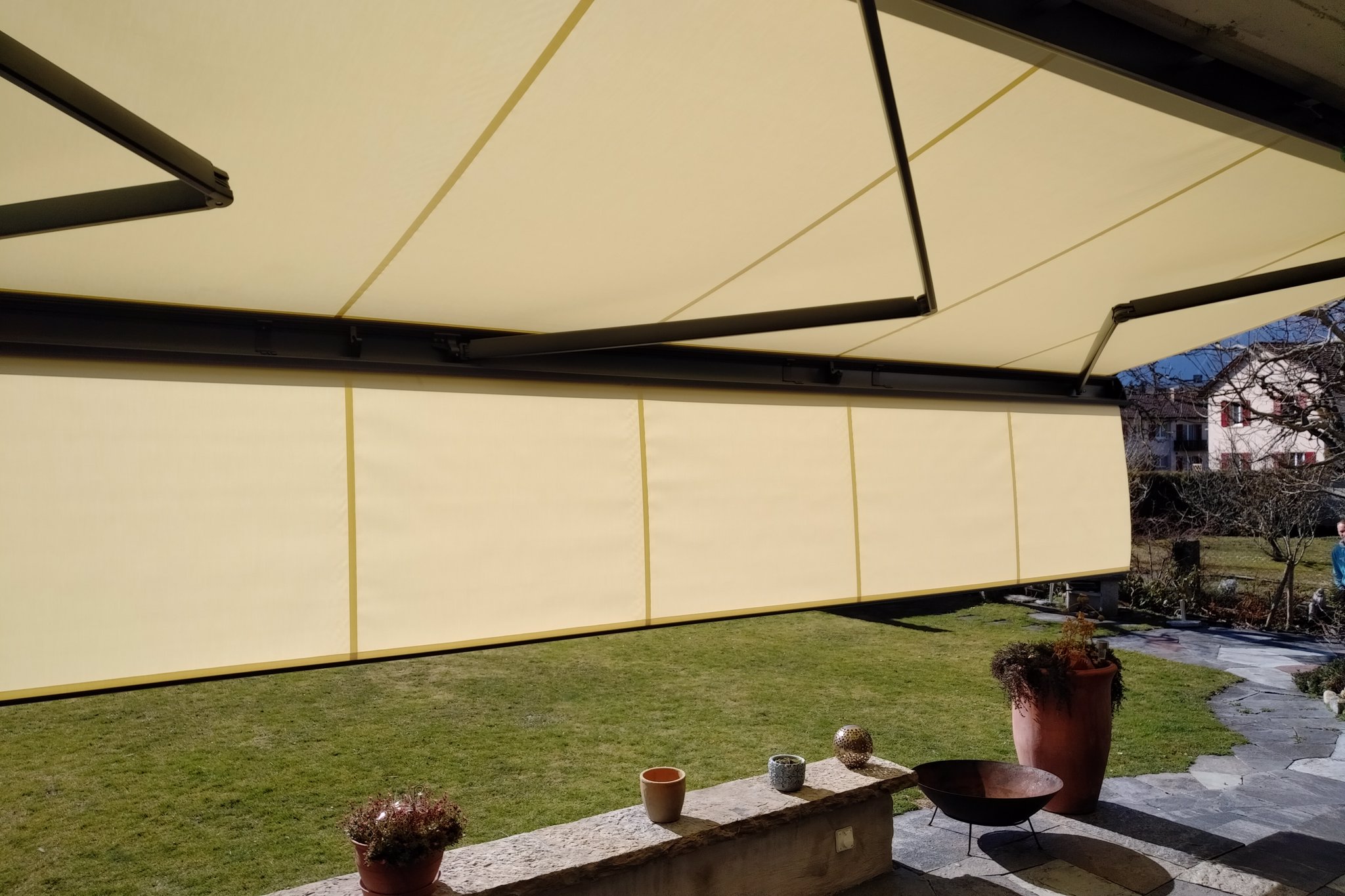 Při výběru látky je vhodné myslet i na to, že vytažená markýza může ovlivnit barvy také v interiéru. Důležitost výběru odstínu látky se také klade na sladění s barvami architektonických a přírodních prvků v dané oblasti.